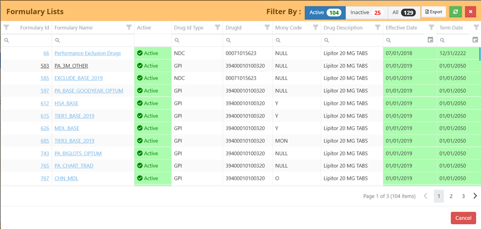 Active/Inactive Filters for Show Drug – Formulary (29571) – The Formulary Lists option under Show Drug now includes filters based on Active/Inactive. The default view is Active only.