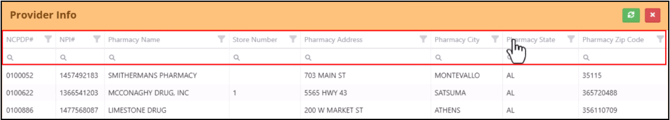 You can use the column headers to search, sort and filter the grid. Once a provider has been selected, the NPI field is automatically populated.