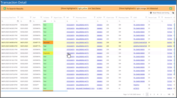 - Test or Duplicate Claims: Highlighted in Yellow.