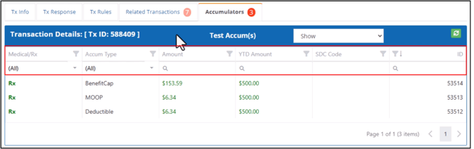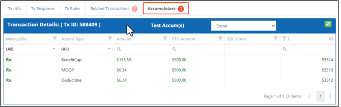 The Medical/Rx dropdown allows you to filter accumulators based on whether they are for prescriptions or other medical expenses.